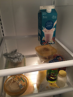 Here are a couple before and after shots of my fridge. Note: I just cleaned the one shelf in this picture. The photo doesn't do justice to how dirty it was. There is some condensation here, so you can't really see the amount of caked on dry milk (why? why? I don't spill the milk, how does it get there!?!). The after is pretty clear, though. I used a wet Envirocloth (a microfiber cloth) and the window cloth to follow for a nice gleaming polish. Looks nice, eh?